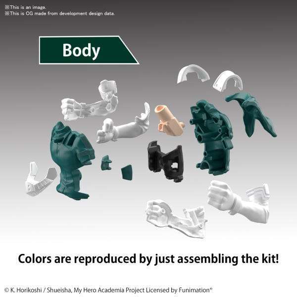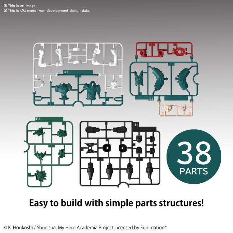 From the anime series My Hero Academia comes an easy-assemble model kit of Izuku Midoriya that requires no glue, no paint, or even tools to assemble! Parts twist off and snap together creating an amazingly detailed figure when assembled.