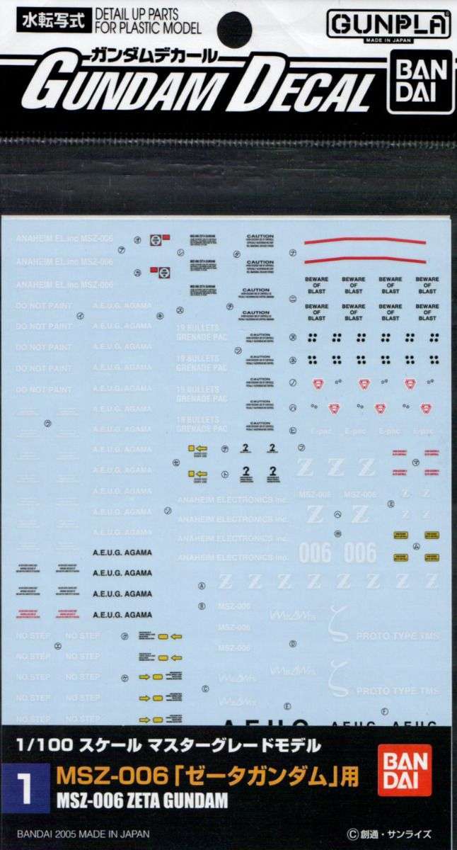 Be the first to review “Gundam Decal #001 for 1/100 MG Zeta Gundam”